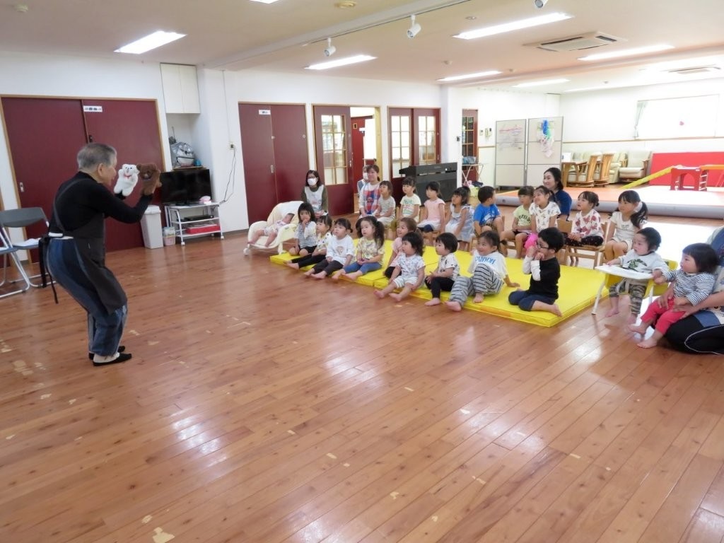 お話し会「マイフレンド」の方に来ていただいて、大型絵本、パネルシアター、エプロンシアターなどたくさん見せてていただきました。
