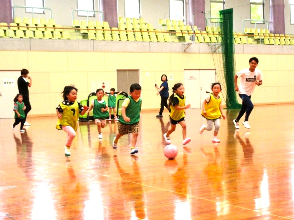 みんな必死にボールを追いかけて、楽しいサッカー体験が出来ました。