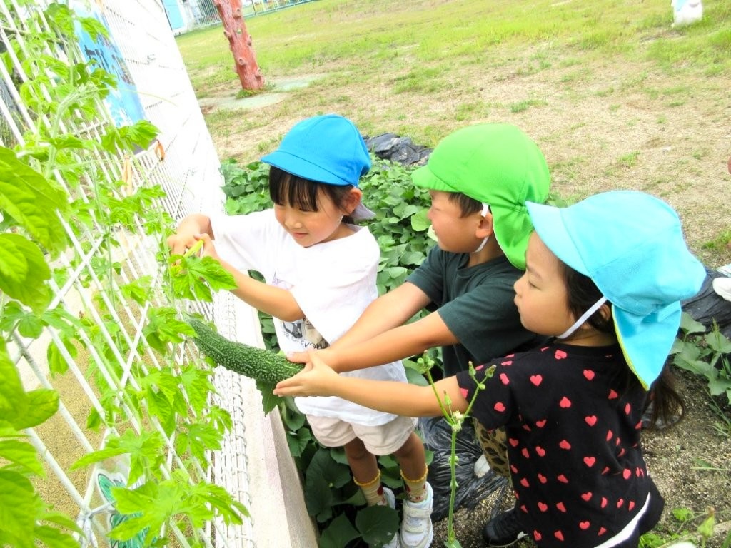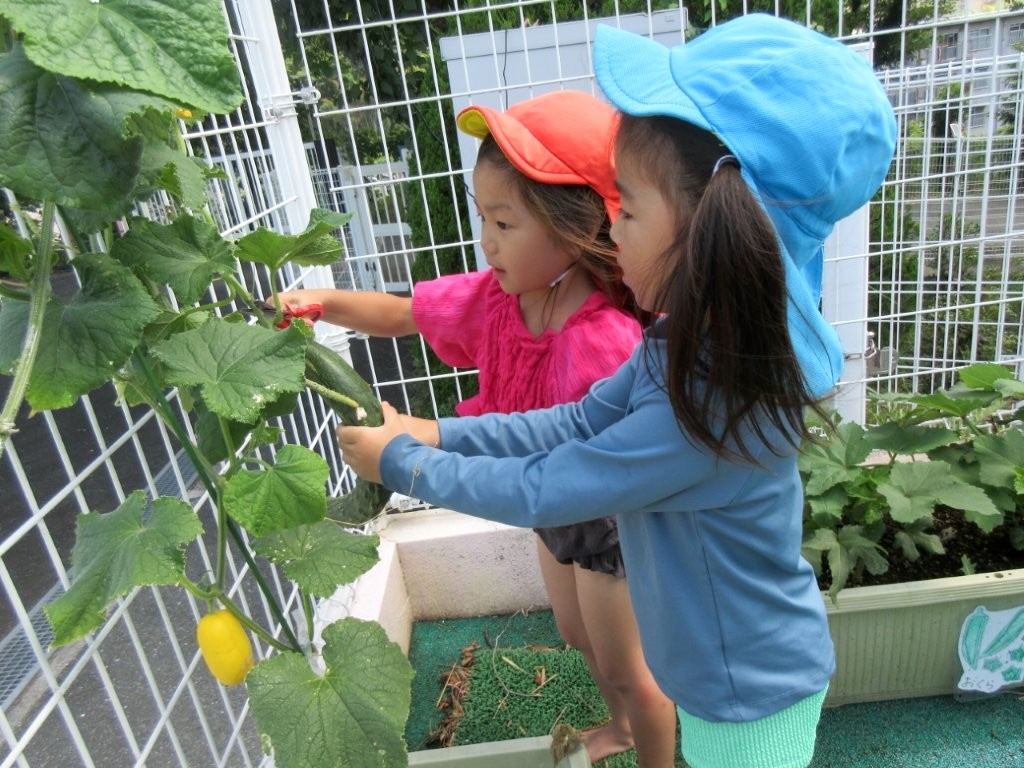 キュウリとオクラの収穫をしました。