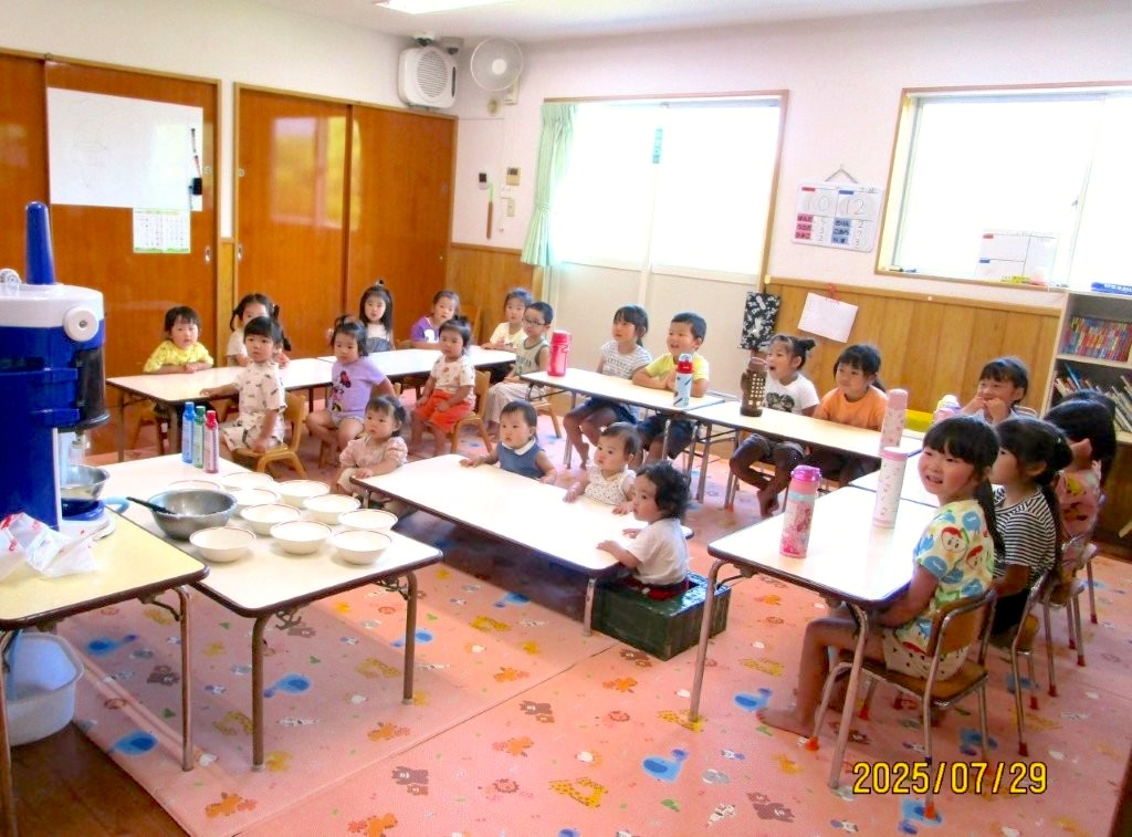 氷遊びをして、その後おやつでかき氷を食べました。