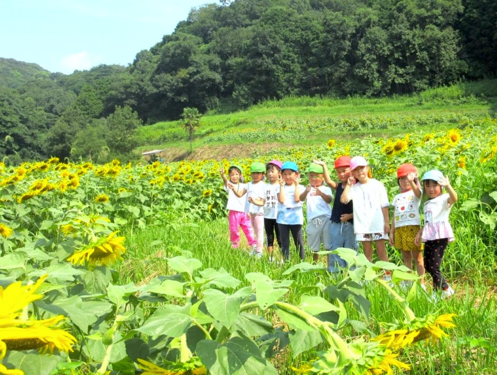 嘉麻バスに乗って、ひまわり畑に行きました。