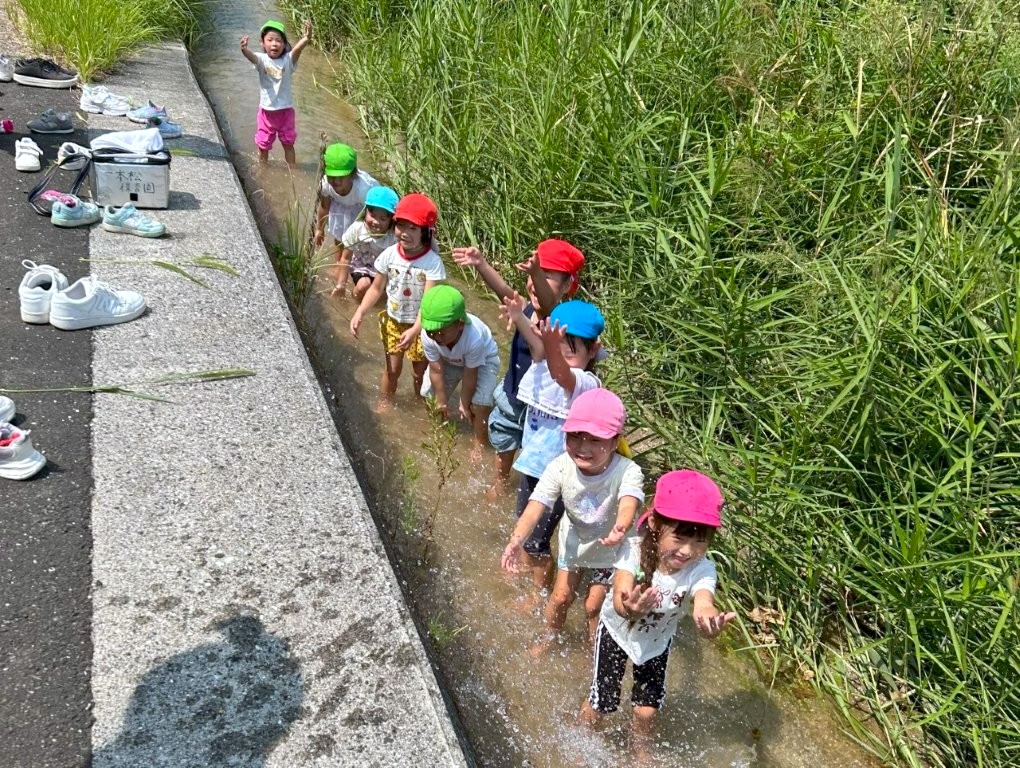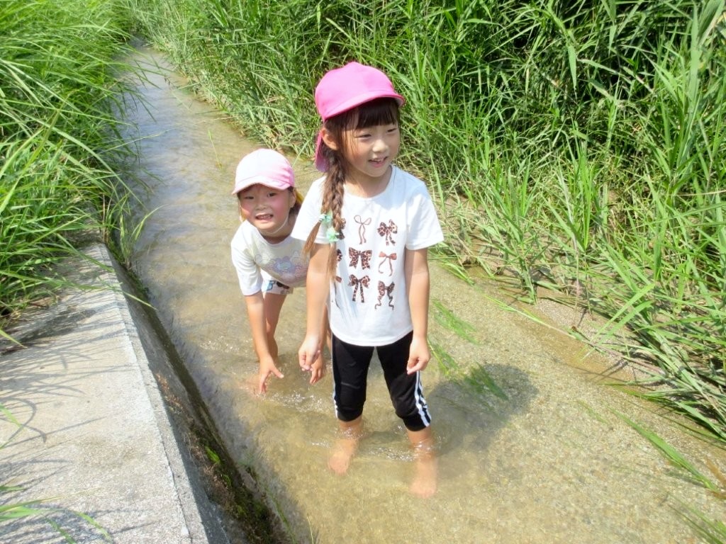 ひまわり畑の横に小川が流れていたので、足をつけてみました。