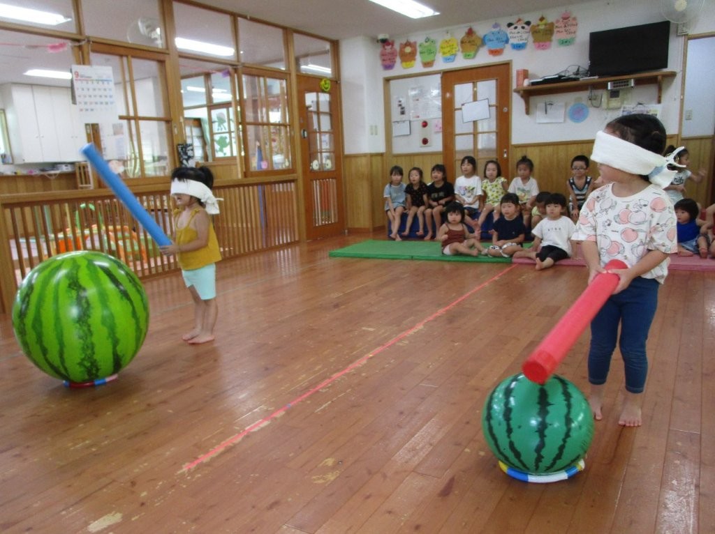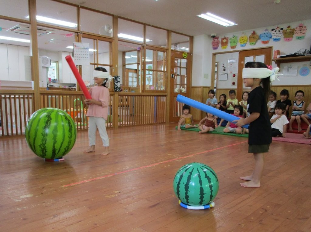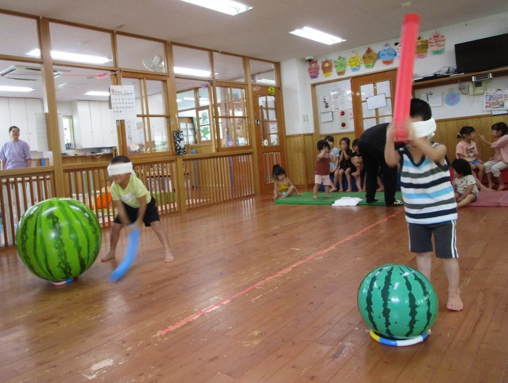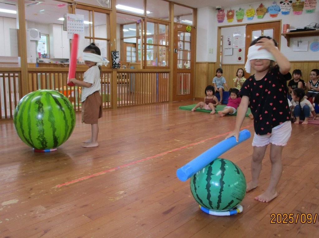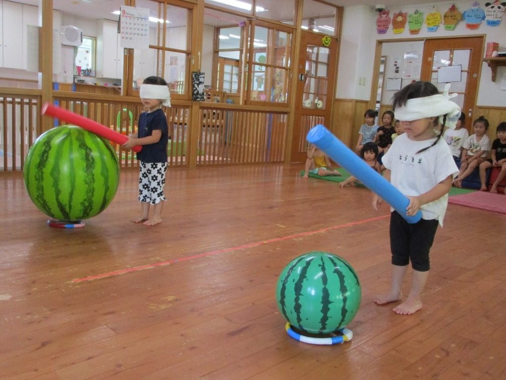 みんなで夏の終わりにスイカ割りごっこをしました!
