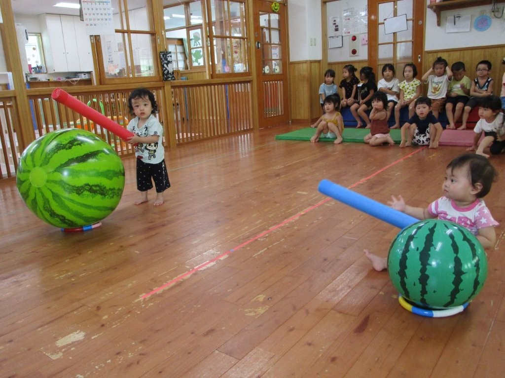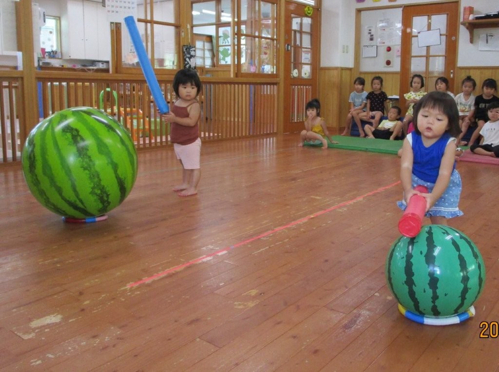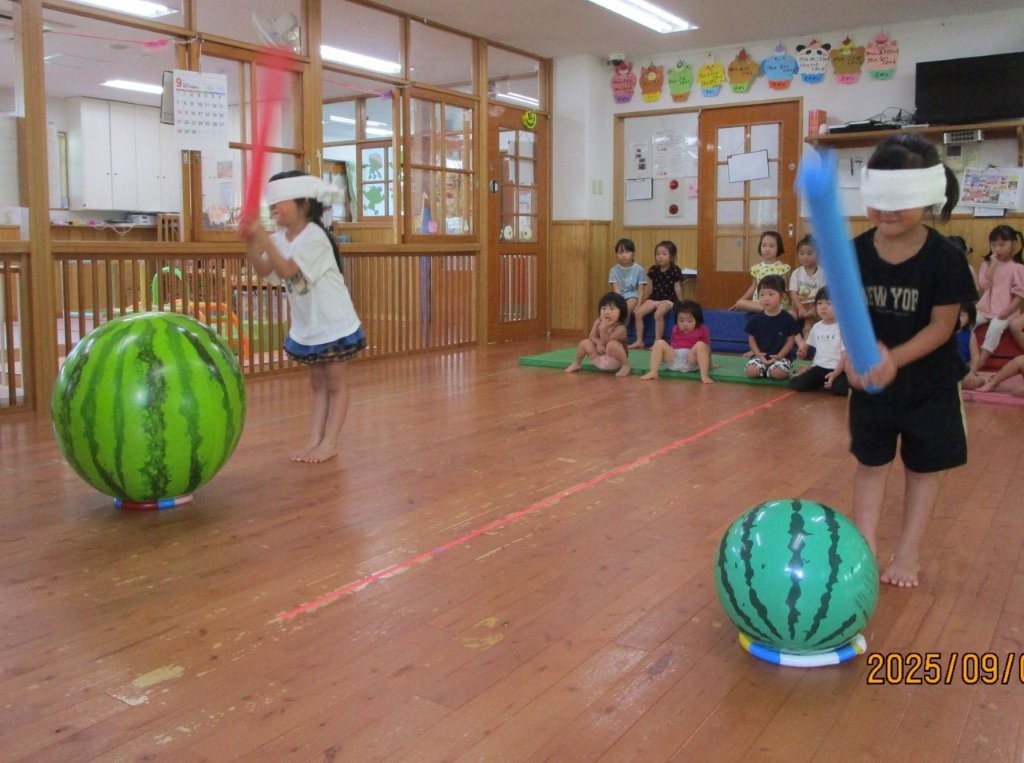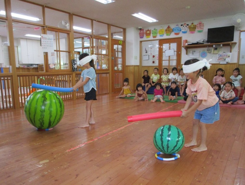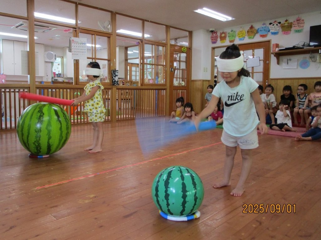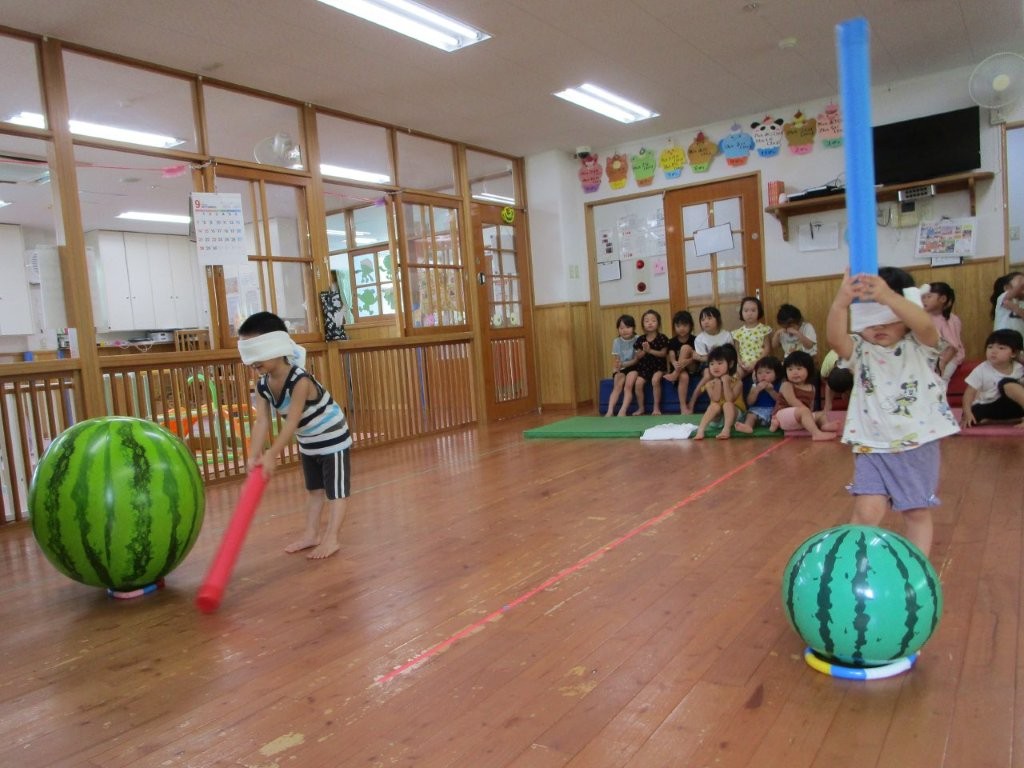 みんなで夏の終わりにスイカ割りごっこをしました!