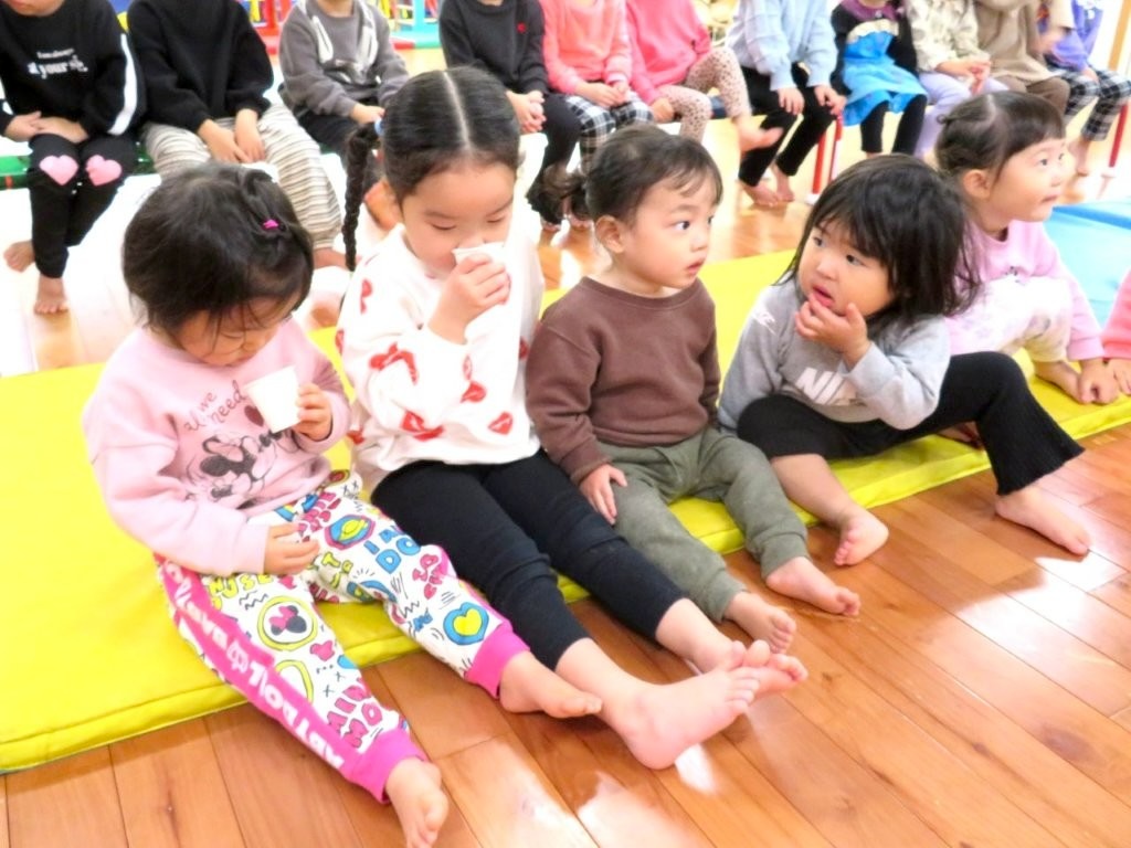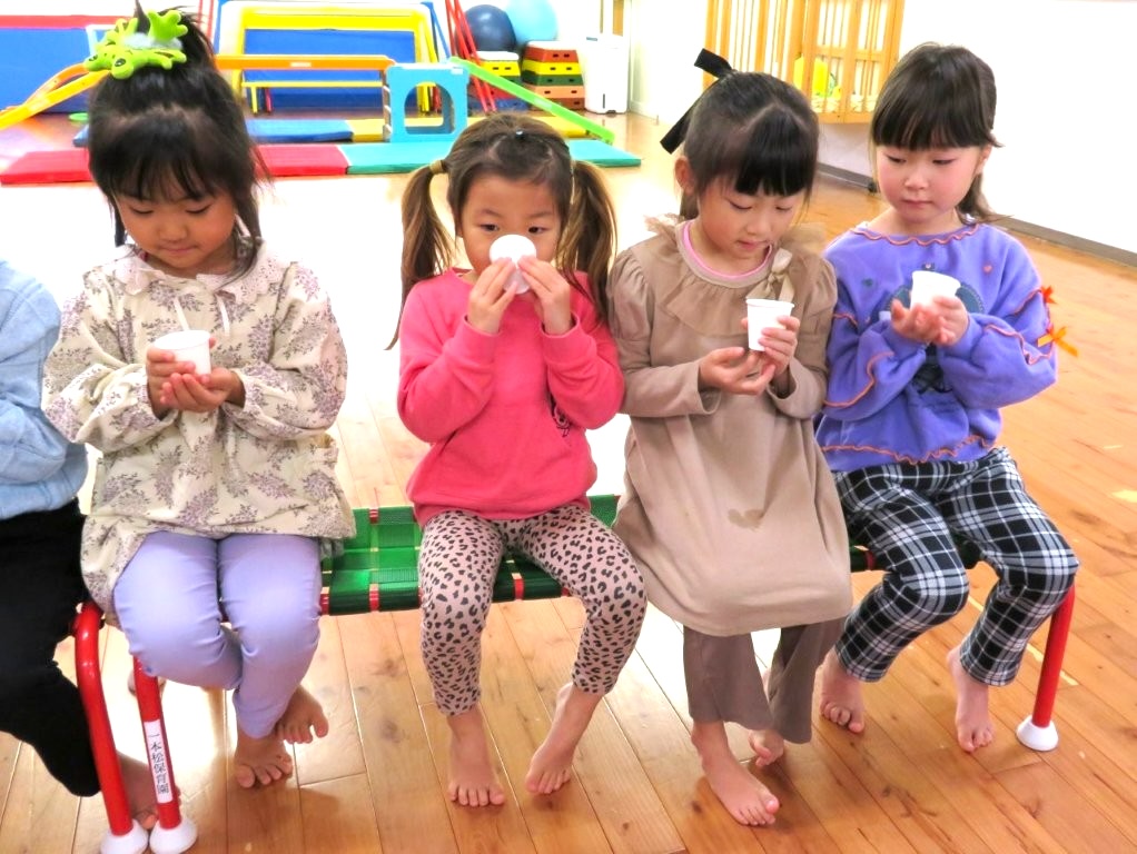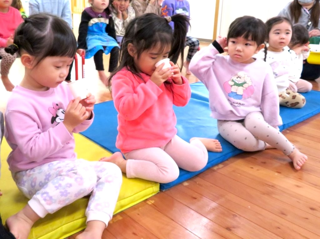 お誕生会に八女茶のソムリエさんが出前授業に来てくださいました。