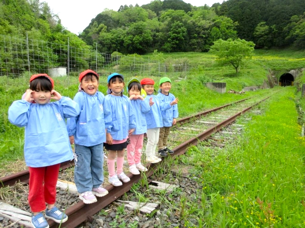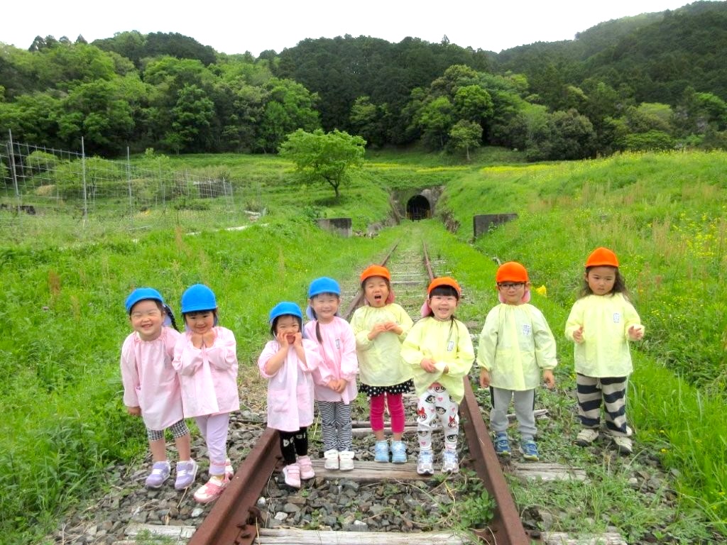 また、今は通っていない線路の上を歩いたり、トンネルの出口に見える小さな光を覗いたりして、とても楽しそうにしていました!