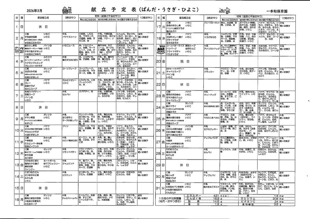 今月の献立