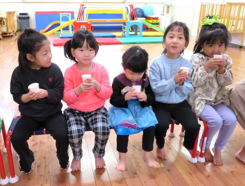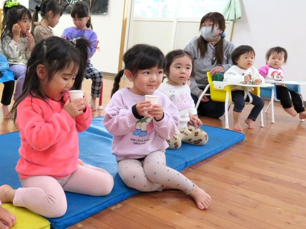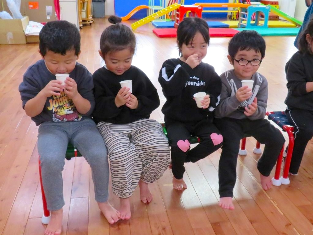 お誕生会に八女茶のソムリエさんが出前授業に来てくださいました。