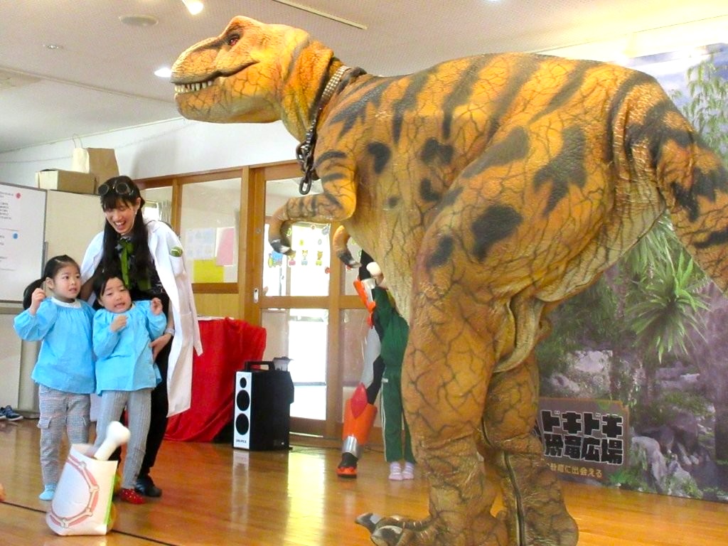 大きい恐竜に、ビックリの子どもたち!!大興奮でした。