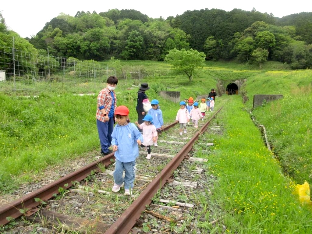 また、今は通っていない線路の上を歩いたり、トンネルの出口に見える小さな光を覗いたりして、とても楽しそうにしていました!